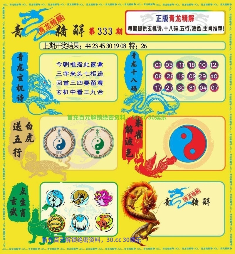 【正版青龙图精解】333期:今朝唯指此家禽,三字来头七相送,回首三四要留意,玄机中看三九合 【九肖中特】羊龙兔蛇鼠鸡猪猴马 【六肖中特】羊龙兔蛇鼠鸡 【七尾中特】0469153 【双波中特】绿波红波 【绝杀一肖】牛牛牛 【平特一尾】333 |