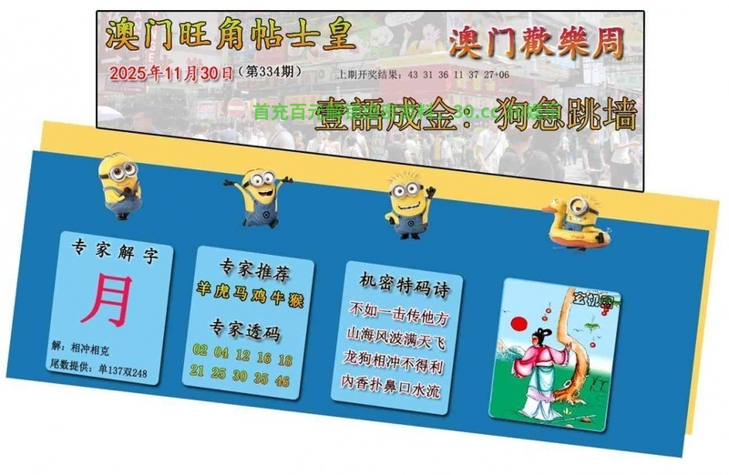 | 335期 | 《猴鸡羊狗牛蛇》六肖大胆包10万 | 开:狗44准 |